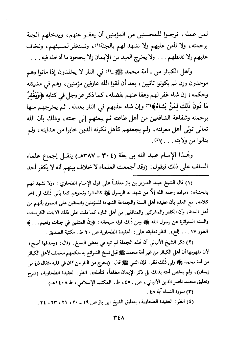 وهذا الإمام عبيد الله بن بطة "304- 387 هـ" ينقل إجماع علماء السلف على ذلك فيقول: "وقد أجمعت العلماء لا خلاف بيهم أنه لا يكفر أحد