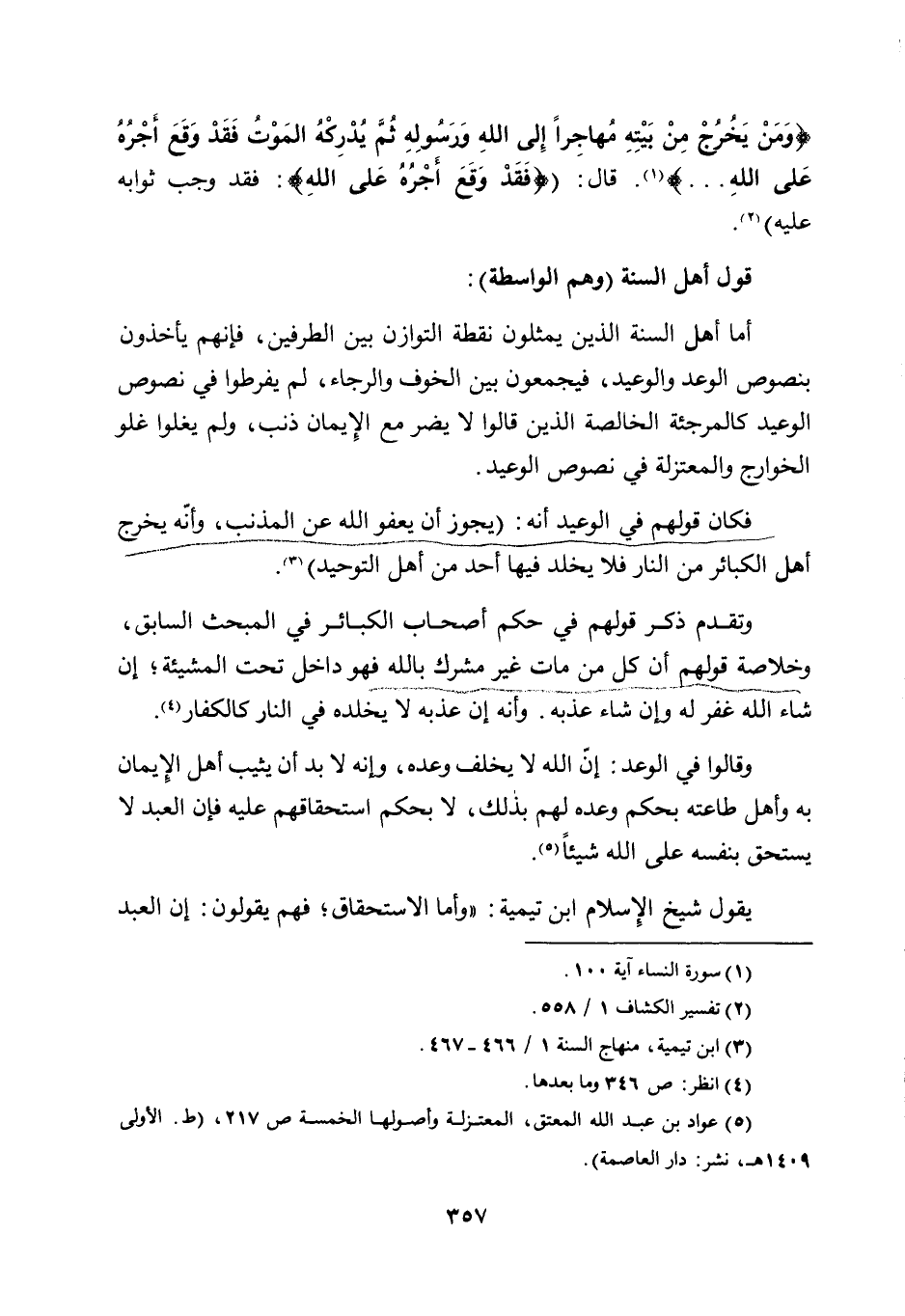 5 عواد بن عبد الله المعتق، المعتزلة وأصولها الخمسة ص217، "ط. الأولى 1409 هـ، نشر: دار العاصمة".
