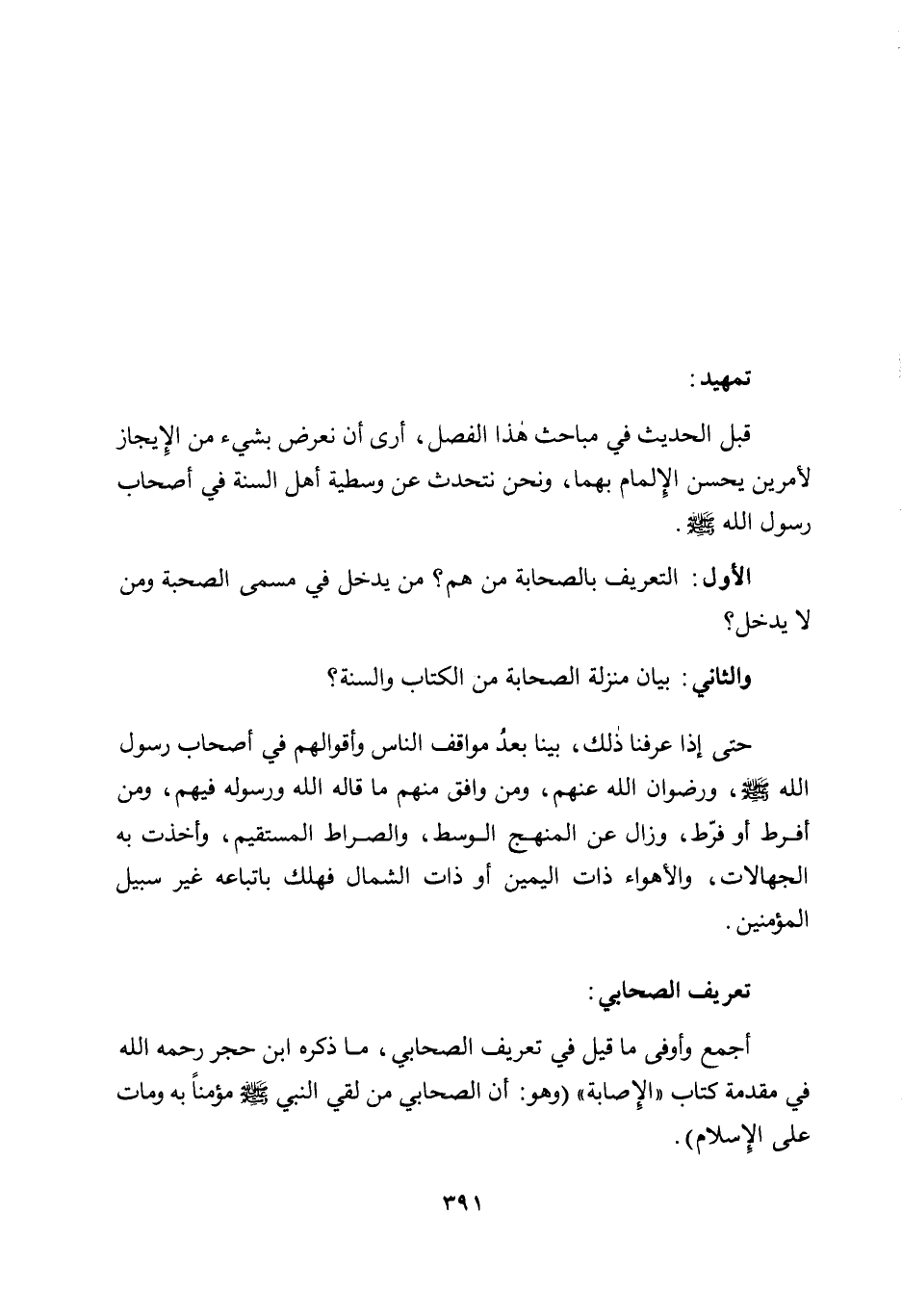 الأول: التعريف بالصحابة من هم؟ من يدخل في مسمى الصحبة ومن لا يدخل؟