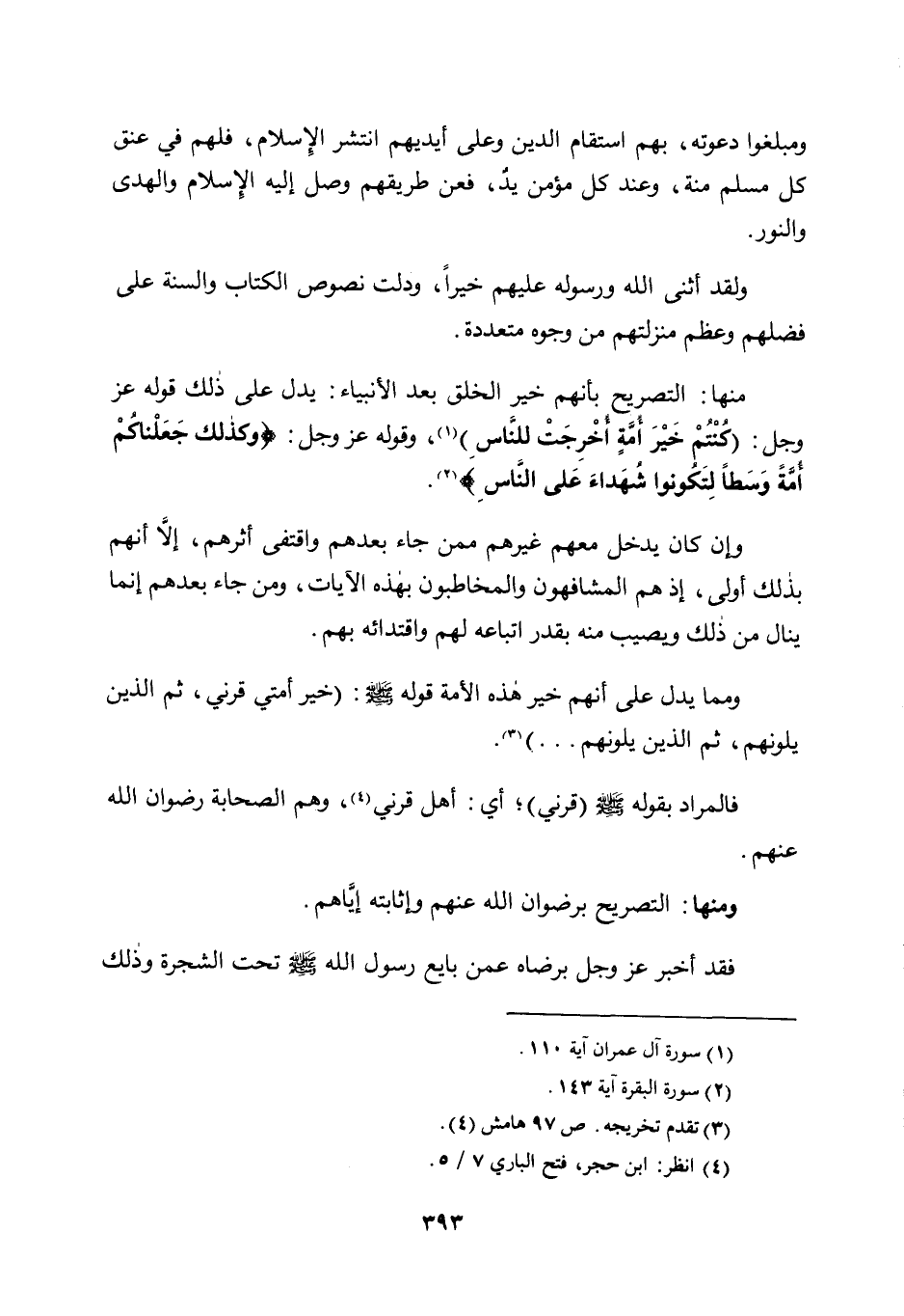ومما يدل على أنهم خير هذه الأمة قوله صلى الله عليه وسلم: "خير أمتي قرني، ثم الذين يلونهم، ثم الذين يلونهم" 3.