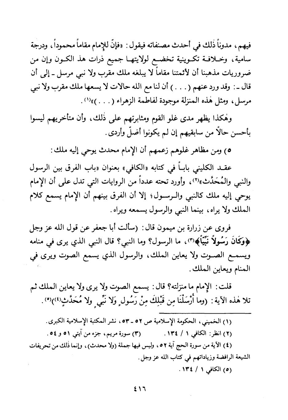 5- ومن مظاهر غلوهم زعمهم أن الإمام محدث يوحى إليه ملك:
