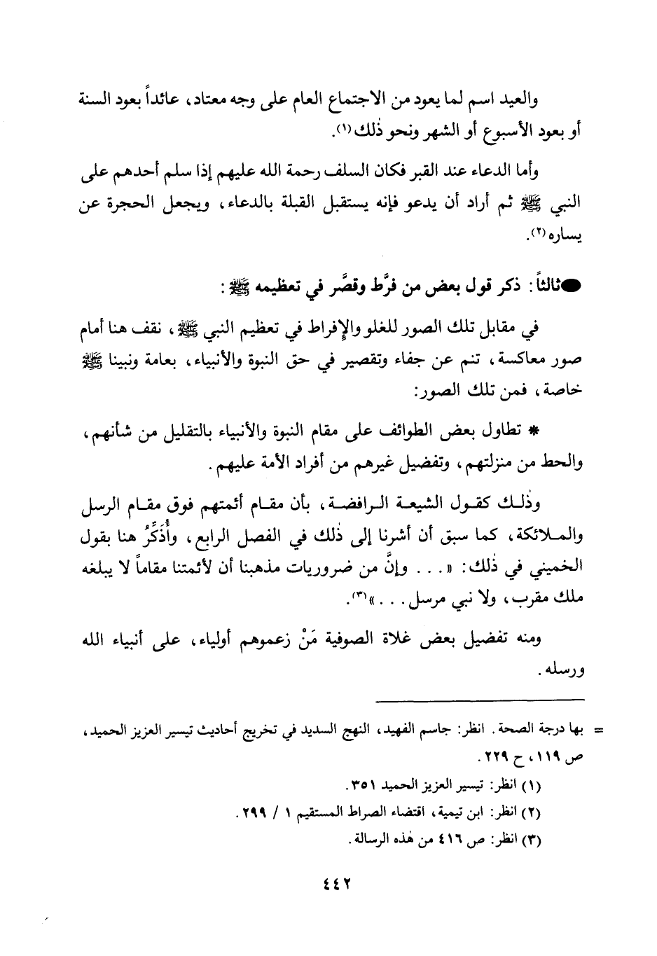 ثالثا: ذكر قول بعض من فرط وقصر في تعظيمه صلى الله عليه وسلم