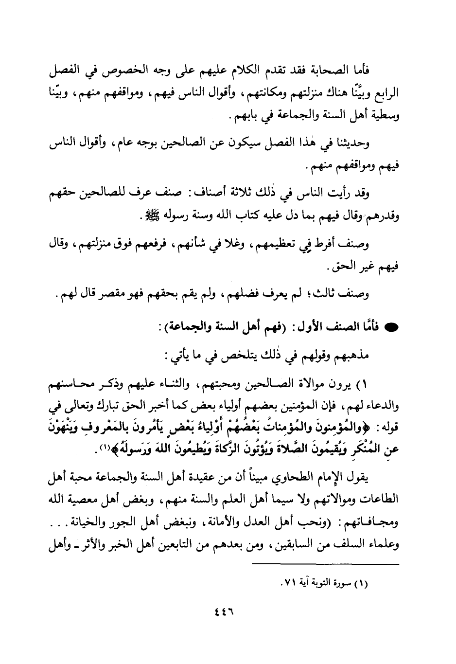 فأما الصنف الأول: "فهم أهل السنة والجماعة"