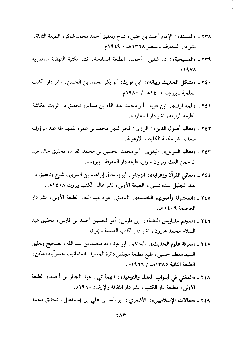 238- "المسند": الإمام أحمد بن حنبل، شرح وتعليق أحمد محمد شاكر، الطبعة الثالثة، نشر دارالمعارف - بمصر 1368هـ/ 1949م.