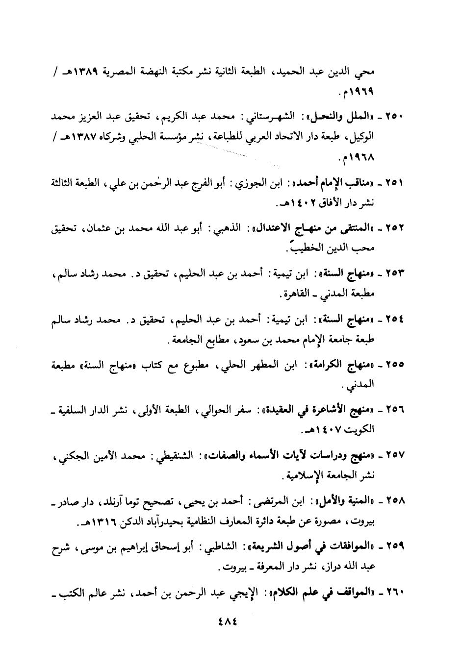 253- "منهاج السنة": ابن تيمية: أحمد بن عبد الحليم، تحقيق د. محمد رشاد سالم، مطبعة المدني - القاهرة.