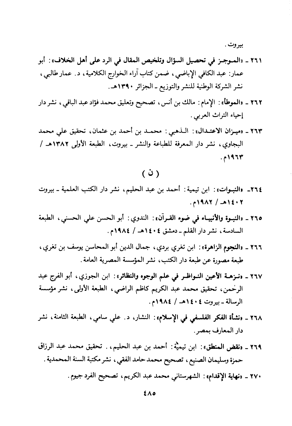 264- "النبوات": ابن تيمية: أحمد بن عبد الحليم، نشر دار الكتب العلمية - بيروت 1402هـ/ 1982م.