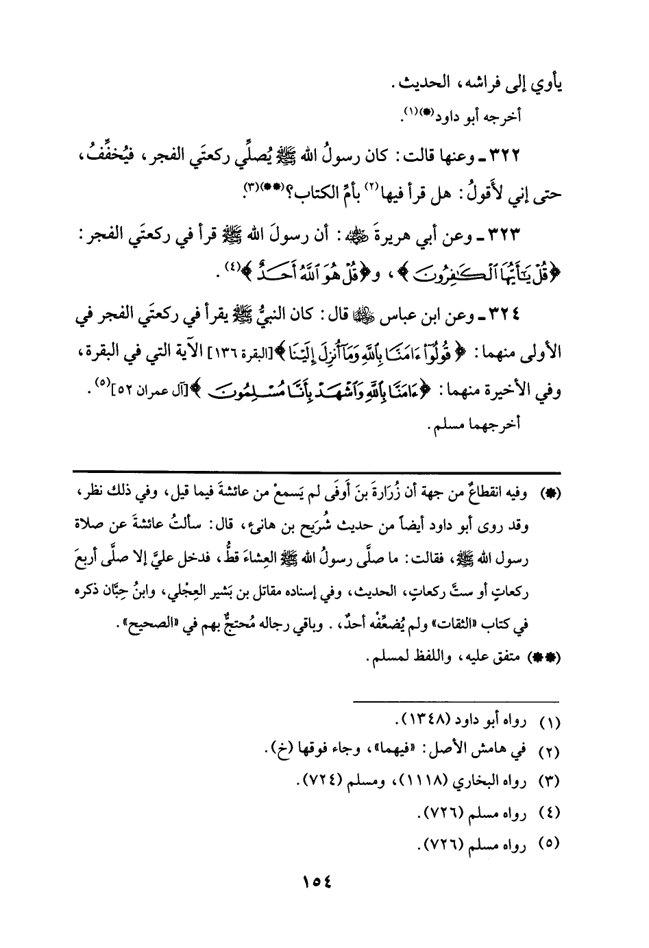 324 - وعن ابن عباس -رضي اللَّه عنهما- قال: كان النبي -صلى اللَّه عليه وسلم- يقرأ في ركعتَي الفجر في الأولى منهما: {قُولُوا آمَنَّا بِاللَّهِ وَمَا أُنْزِلَ إِلَيْنَا} [البقرة: 136] الآية التي في البقرة، وفي الأخيرة منهما: {آمَنَّا بِاللَّهِ وَاشْهَدْ بِأَنَّا مُسْلِمُونَ} [آل عمران: 52] (¬5).