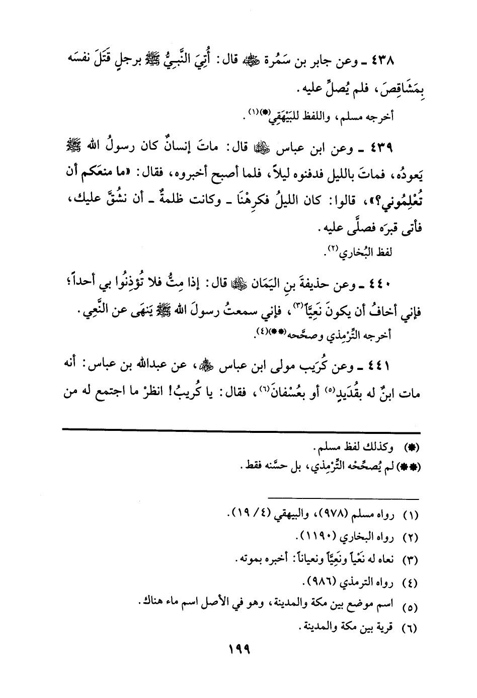 441 - وعن كُرَيب مولى ابن عباس -رضي اللَّه عنهم-، عن عبد اللَّه بن عباس: أنه مات ابنٌ له بقُدَيدٍ (¬5) أو بعُسْفانَ (¬6)، فقال: يا كُريبُ! انظرْ ما اجتمع له من