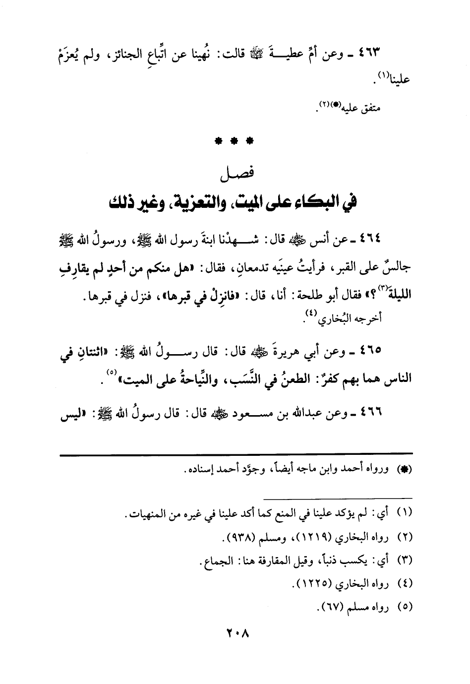 463 - وعن أمِّ عطيةَ -رضي اللَّه عنها- قالت: نهُينا عن اتِّباعِ الجنائز، ولم يُعزَمْ علينا (¬1).