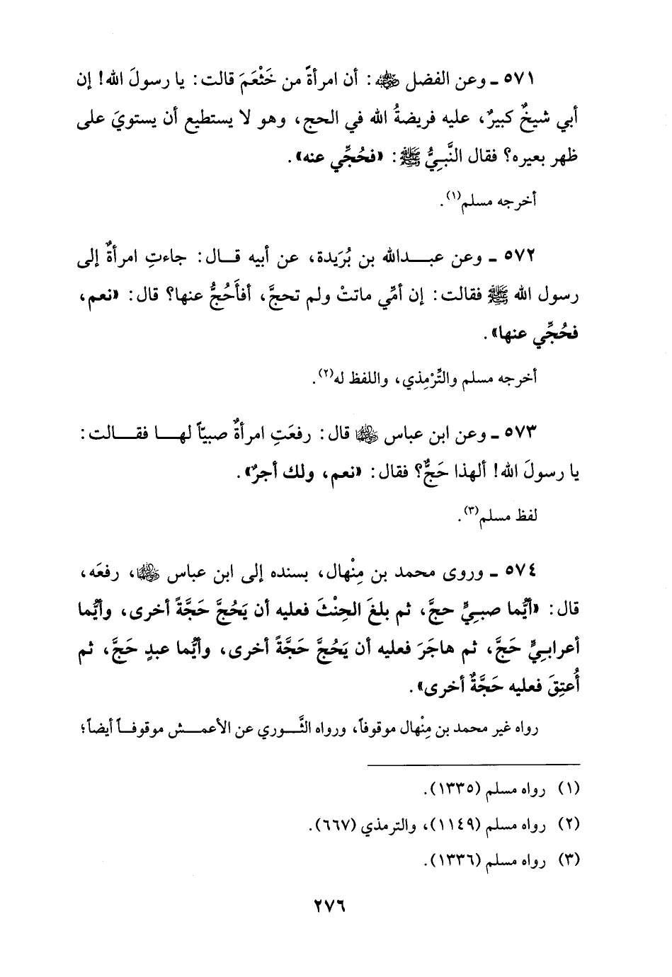 573 - وعن ابن عباس كما قال: رفعَتِ امرأةٌ صبيًّا لها فقالت: يا رسولَ اللَّه! ألهذا حَجٌّ؟ فقال: "نعم، ولك أجرٌ".