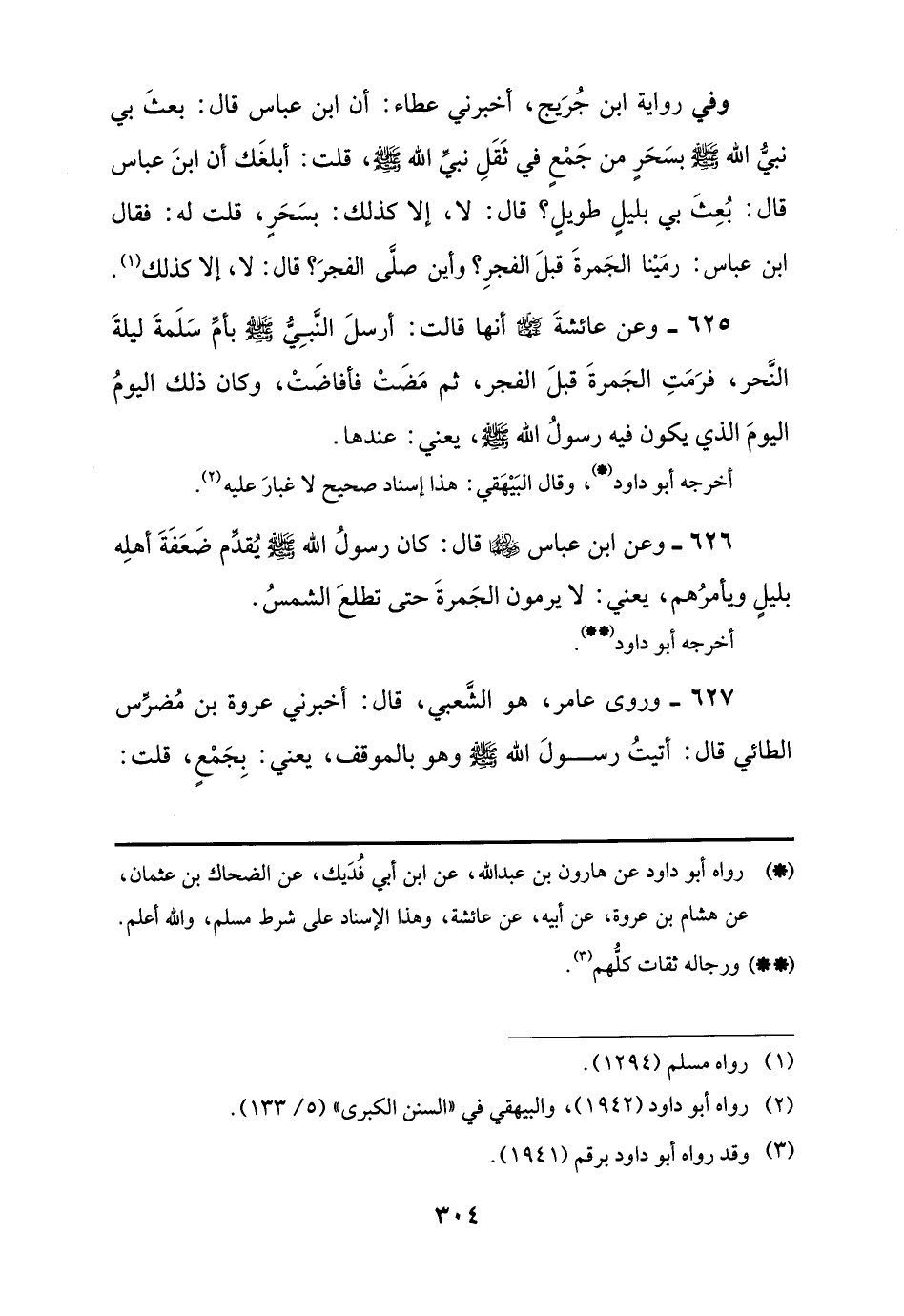 627 - وروى عامر، هو الشَّعبي، قال: أخبرني عروة بن مُضرِّس الطائي قال: أتيتُ رسولَ اللَّه -صلى اللَّه عليه وسلم- وهو بالموقف، يعني: بِجَمْعٍ، قلت: