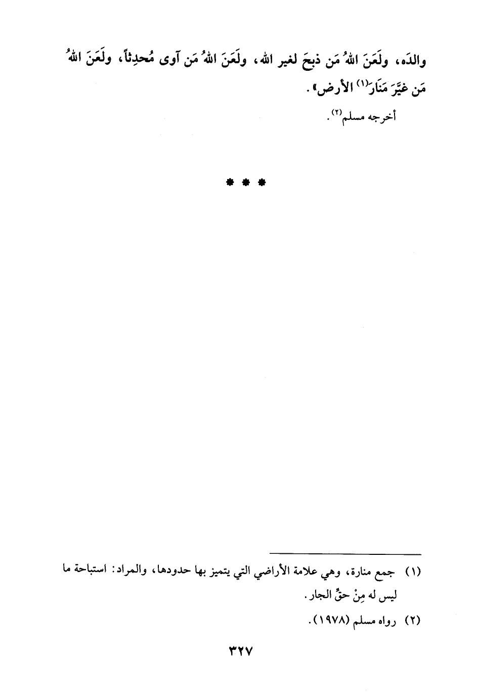 (¬1) جمع منارة، وهي علامة الأراضي التي يتميز بها حدودها، والمراد: استباحة ما ليس له مِنْ حقِّ الجار.