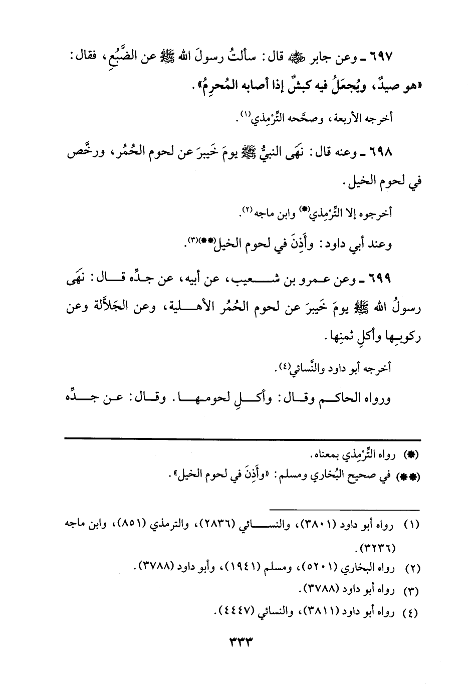697 - وعن جابر -رضي اللَّه عنه- قال: سألتُ رسولَ اللَّه -صلى اللَّه عليه وسلم- عن الضَّبُعِ، فقال: "هو صيدٌ، ويُجعَلُ فيه كبشٌ إذا أصابه المُحرِمُ".