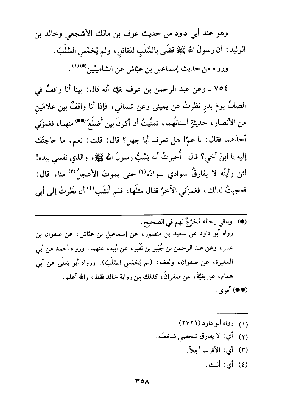 رواه أبو داود عن سعيد بن منصور، عن إسماعيل بن عيَّاش، عن صفوان بن عمر، وعن عبد الرحمن بن جُبَير بن نُفَير، عن أبيه، عنهما. ورواه أحمد عن أبي المغيرة، عن صفوان، ولفظه: (لم يُخمِّسِ السَّلَبَ). ورواه أبو يَعلَى عن أبي همام، عن بقيَّةَ، عن صفوانَ، كذلك مِن رواية خالد فقط، واللَّه أعلم.