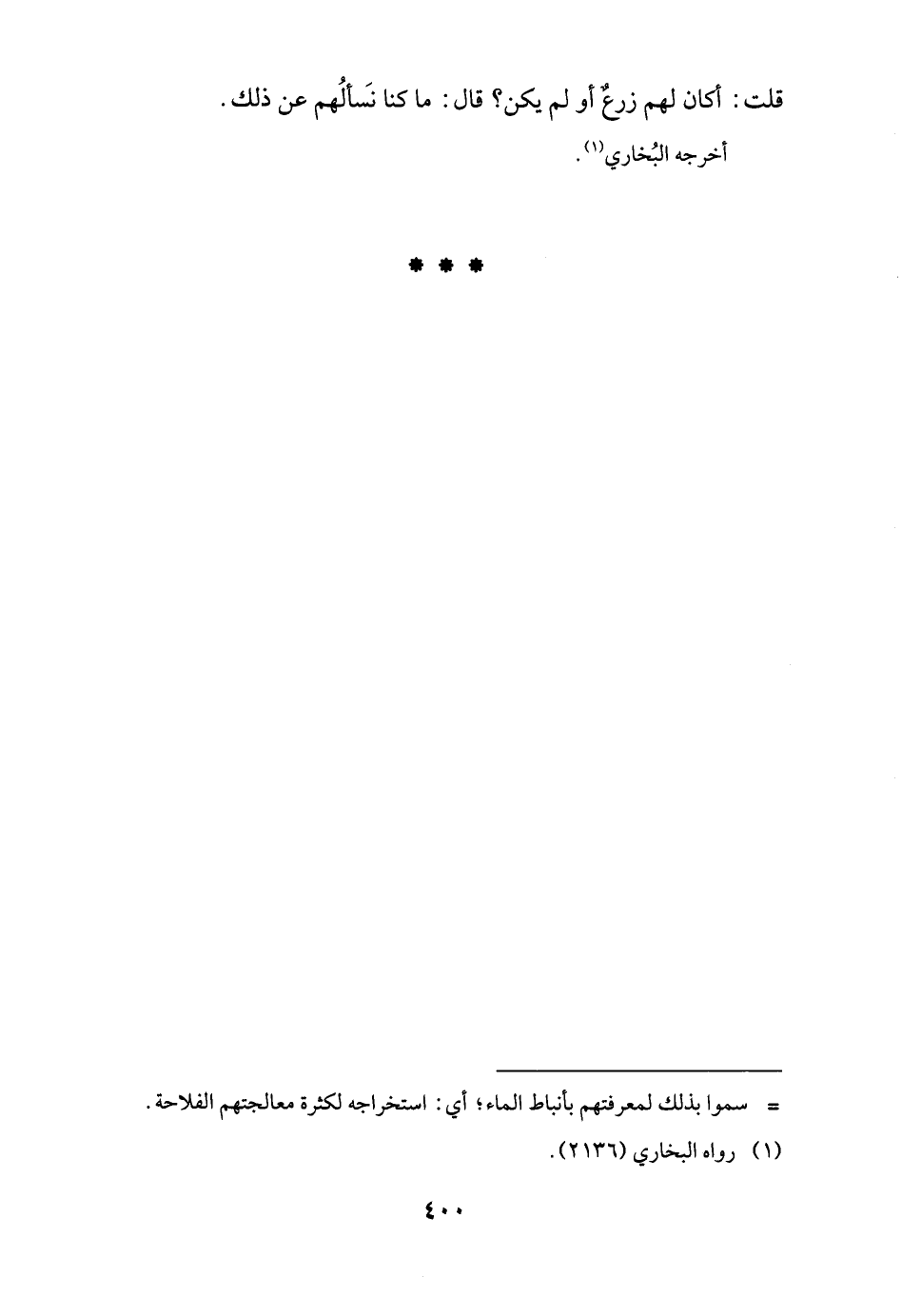 قلت: أكان لهم زرعٌ أو لم يكن؟ قال: ما كنا نَسألُهم عن ذلك.