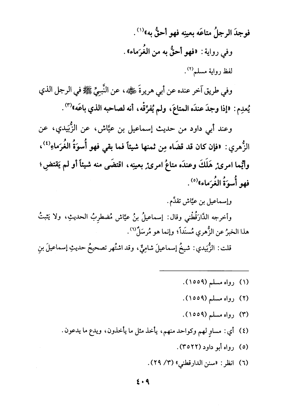 وفي طريق آخر عنده عن أبي هريرةَ -رضي اللَّه عنه-، عن النَّبِيِّ -صلى اللَّه عليه وسلم- في الرجل الذي يُعدِم: "إذا وجدَ عندَه المتاعَ، ولم يُفرِّقْه، أنه لصاحبه الذي باعَه" (¬3).