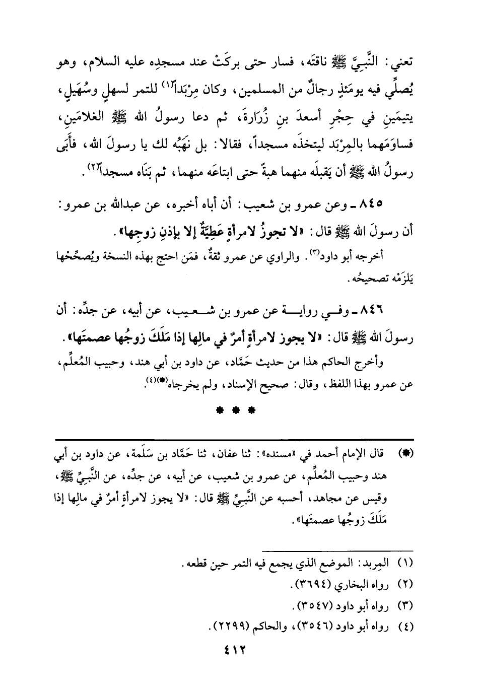 845 - وعن عمرو بن شعيب: أن أباه أخبره، عن عبد اللَّه بن عمرو: أن رسولَ اللَّه -صلى اللَّه عليه وسلم- قال: "لا تجوزُ لامرأةٍ عَطِيَّةٌ إلا بإذنِ زوجِها".