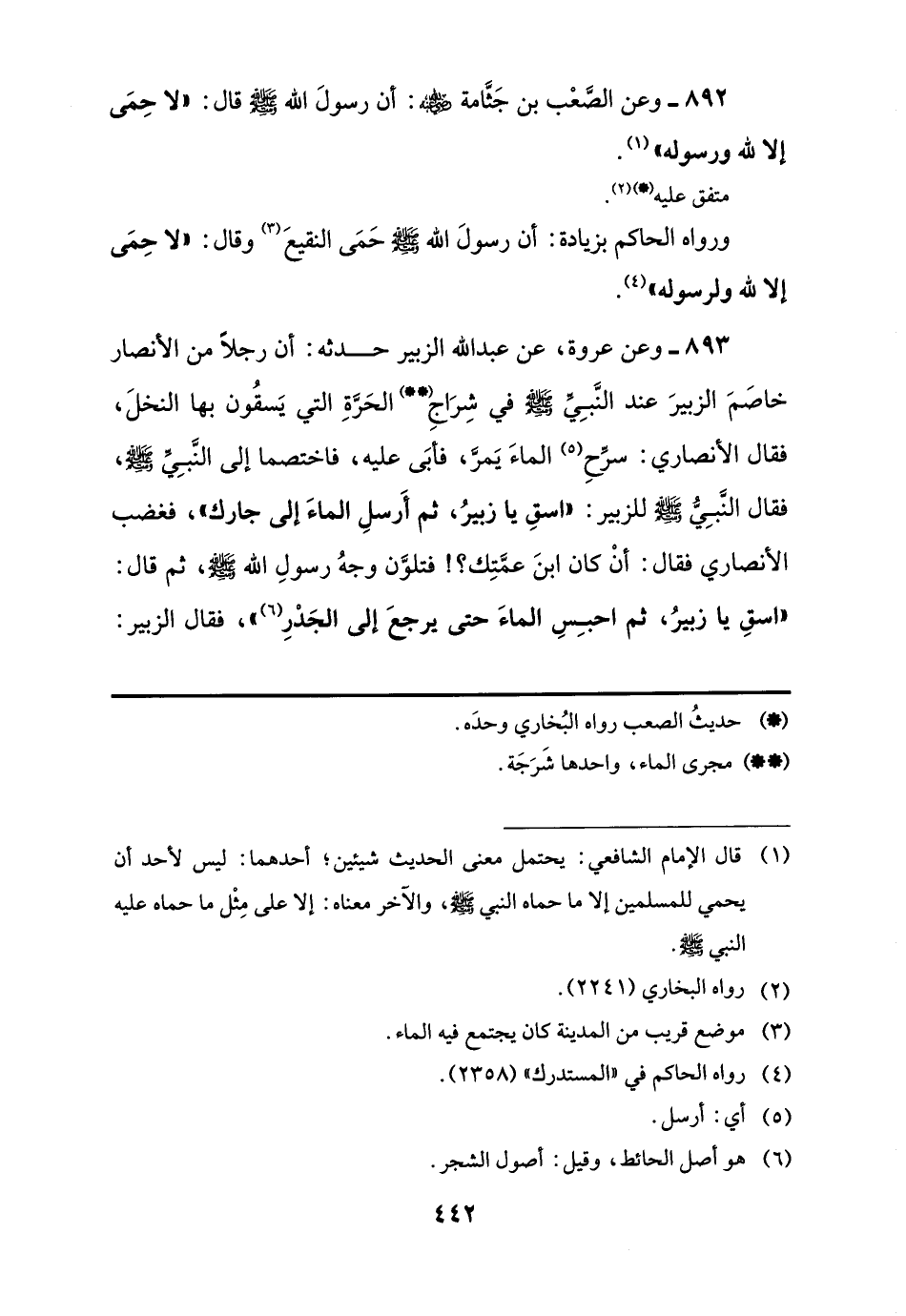 892 - وعن الصَّعْب بن جَثَّامة -رضي اللَّه عنه-: أن رسولَ اللَّه -صلى اللَّه عليه وسلم- قال: "لا حِمَى إلا للَّه ورسوله" (¬1).