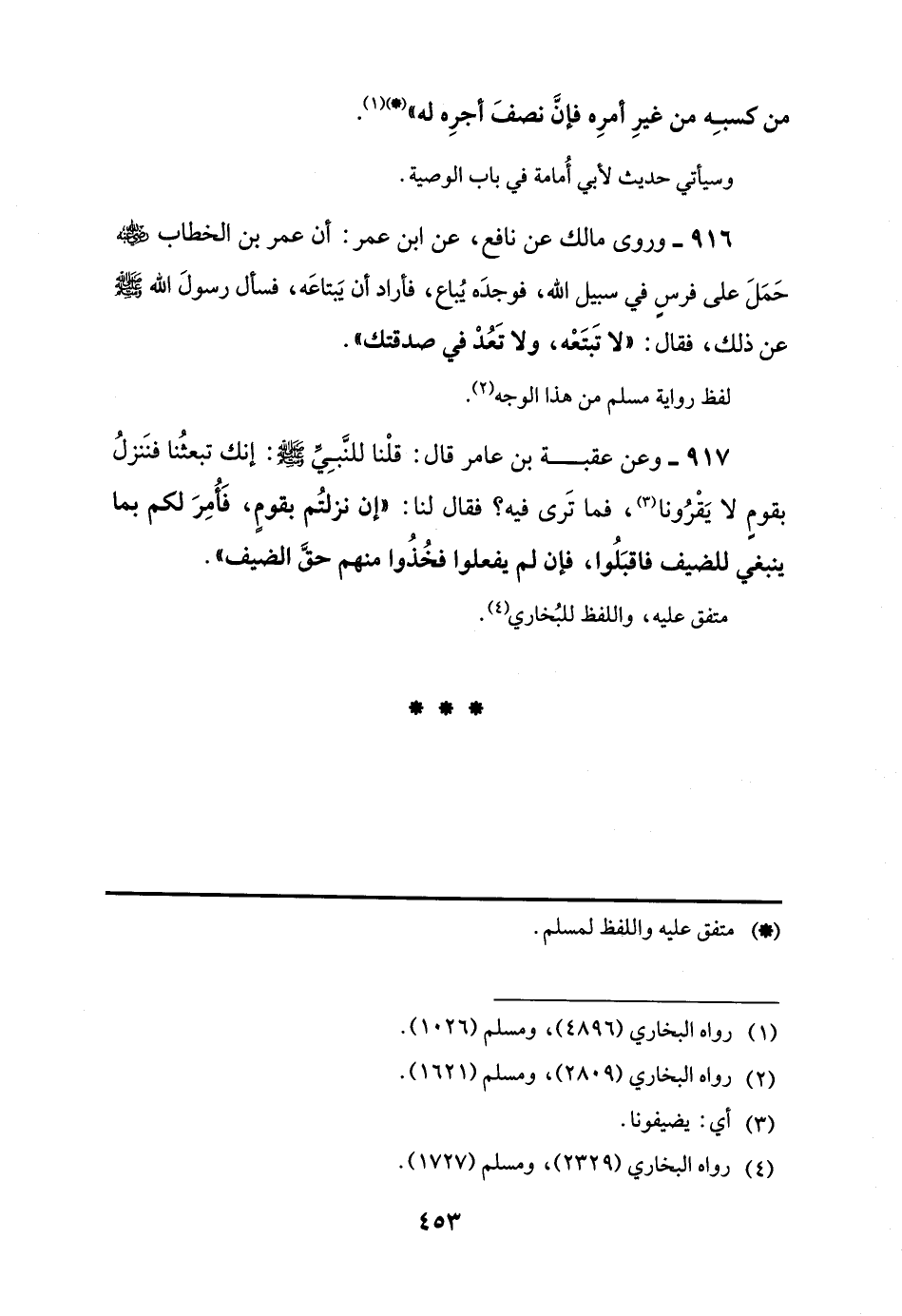 916 - وروى مالك عن نافع، عن ابن عمر: أن عمر بن الخطاب -رضي اللَّه عنه- حَمَلَ على فرسٍ في سبيل اللَّه، فوجدَه يُباع، فأراد أن يَبتاعَه، فسأل رسولَ اللَّه -صلى اللَّه عليه وسلم- عن ذلك، فقال: "لا تَبتَعْه، ولا تَعُدْ في صدقتك".