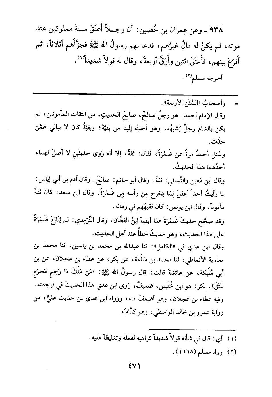 938 - وعن عِمران بن حُصين: أنَّ رجلًا أَعتَقَ ستةَ مملوكين عند موته، لم يكنْ له مالٌ غيرُهم، فدعا بهم رسولُ اللَّه -صلى اللَّه عليه وسلم- فجزَّأَهم أثلاثًا، ثم أَقرَعَ بينهم، فأَعتَقَ اثنين وأَرَقَّ أربعةَ، وقال له قولًا شديدًا (¬1).