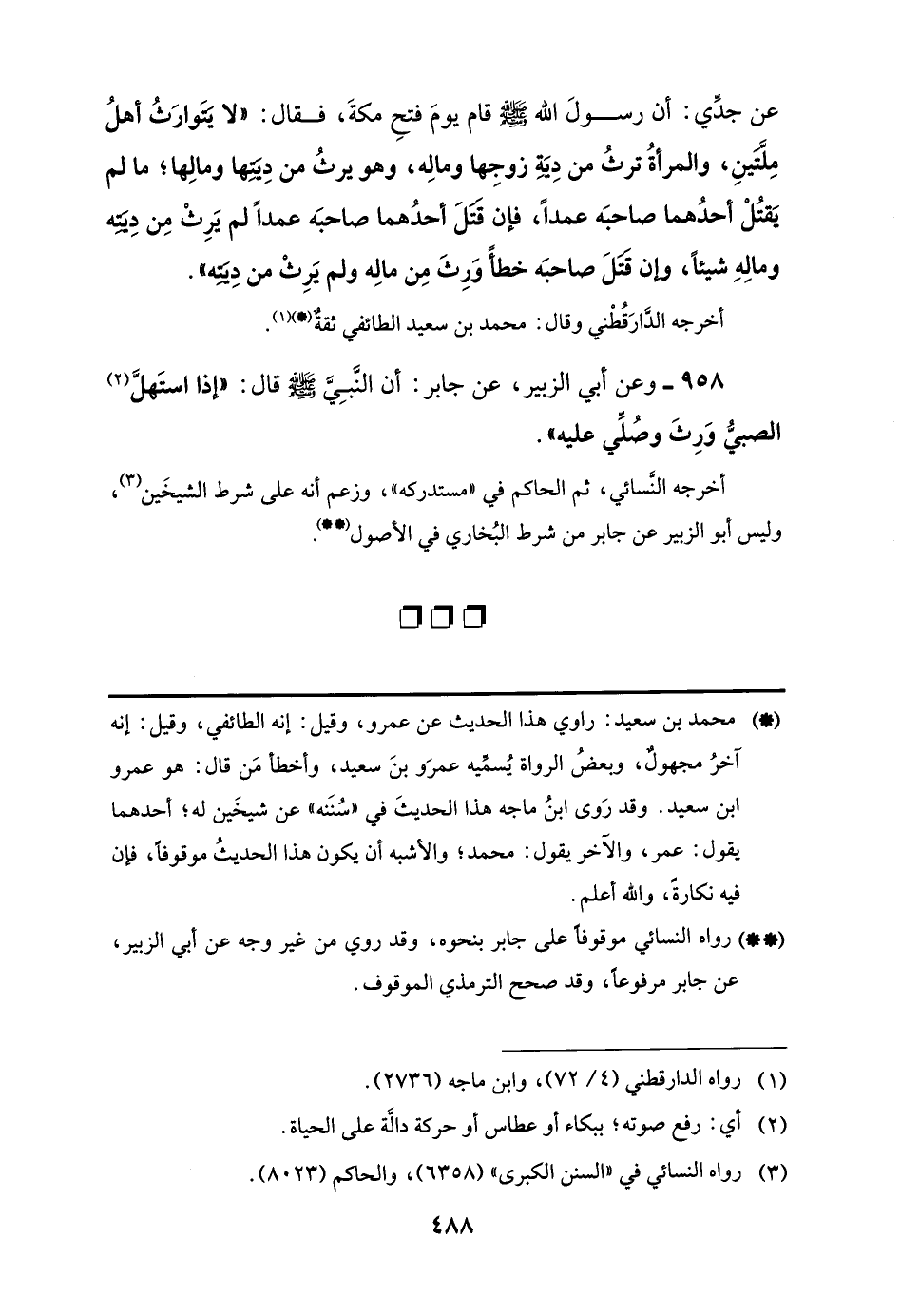 958 - وعن أبي الزبير، عن جابر: أنَّ النَّبِيَّ -صلى اللَّه عليه وسلم- قال: "إذا استَهلَّ (¬2) الصبيُّ وَرِثَ وصُلِّي عليه".
