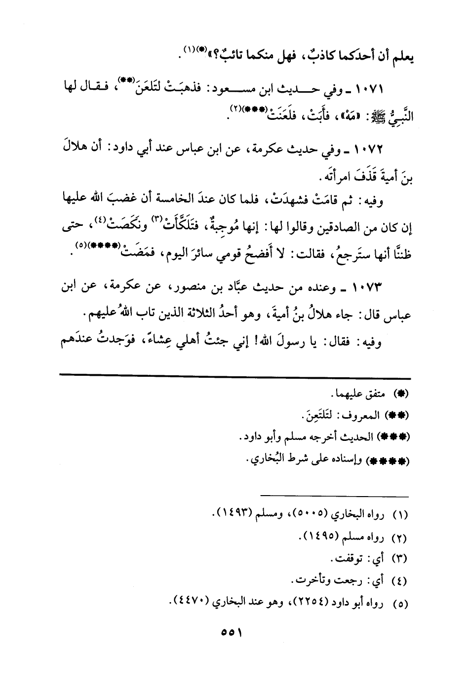 1072 - وفي حديث عكرمة، عن ابن عباس عند أبي داود: أن هلالَ بنَ أميةَ قَذَفَ امرأتَه.
