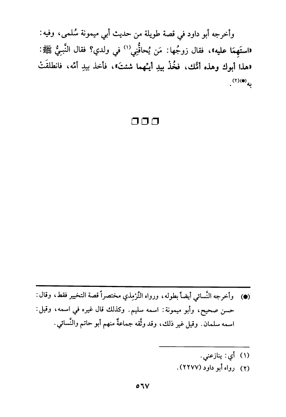 (*) وأخرجه النَّسائي أيضًا بطوله، ورواه التِّرْمِذي مختصرًا قصة التخيير فقط، وقال: حسن صحيح، وأبو ميمونة: اسمه سليم. وكذلك قال غيره في اسمه، وقيل: اسمه سلمان. وقيل غير ذلك، وقد وثَّقه جماعة منهم أبو حاتم والنَّسائي.