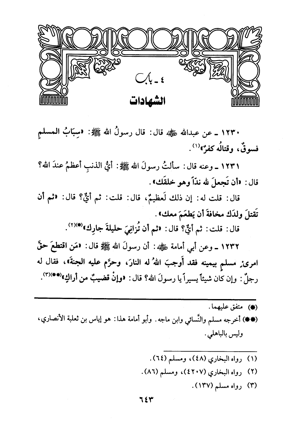 (**) أخرجه مسلم والنَّسائي وابن ماجه. وأبو أمامة هذا: هو إياس بن ثعلبة الأنصاري، وليس بالباهلي.