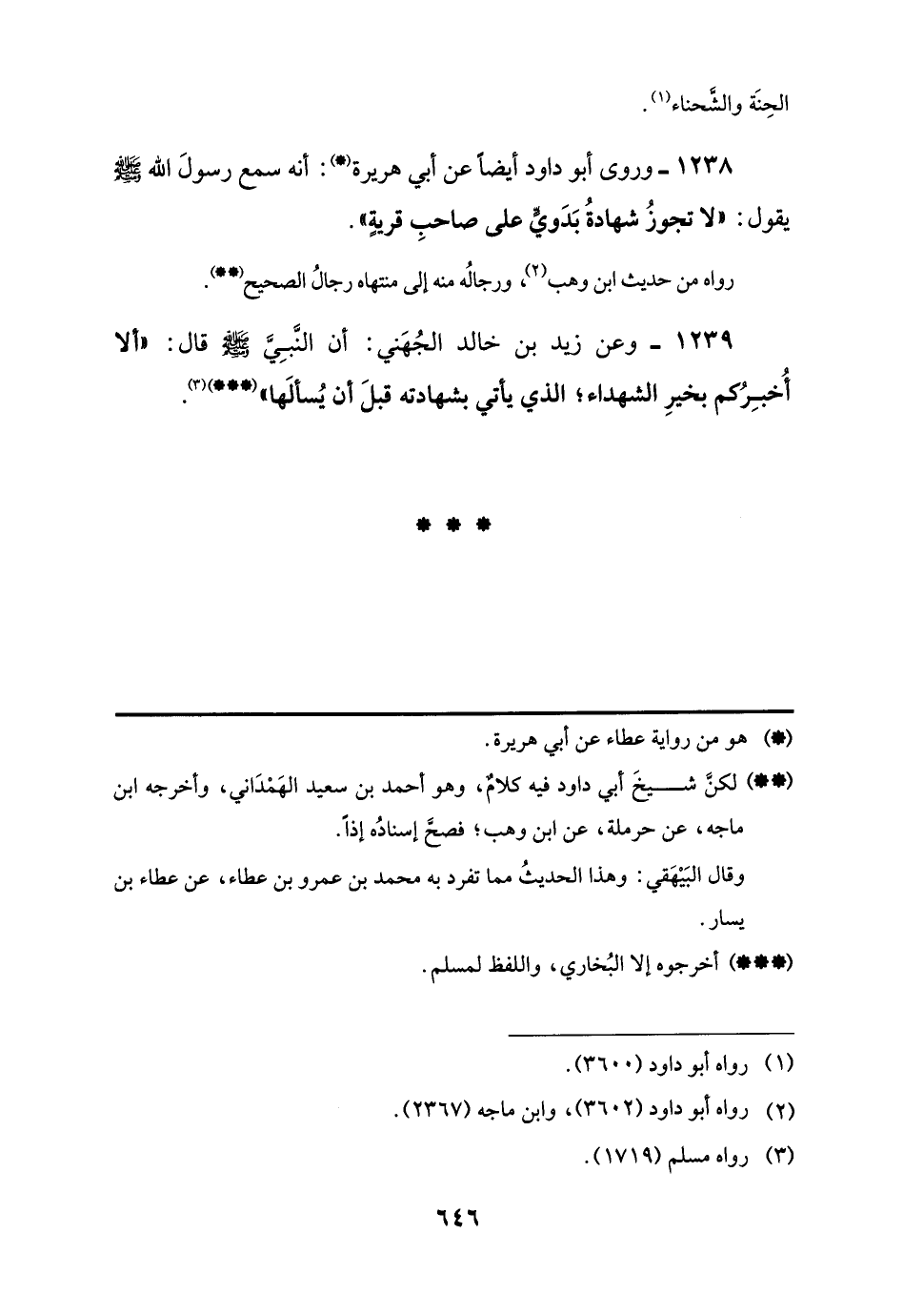 1239 - وعن زيد بن خالد الجُهَني: أن النَّبِيَّ -صلى اللَّه عليه وسلم- قال: "ألا أُخبِرُكم بخيرِ الشهداء؛ الذي يأتي بشهادته قبلَ أن يُسألَها" (...) (¬3).