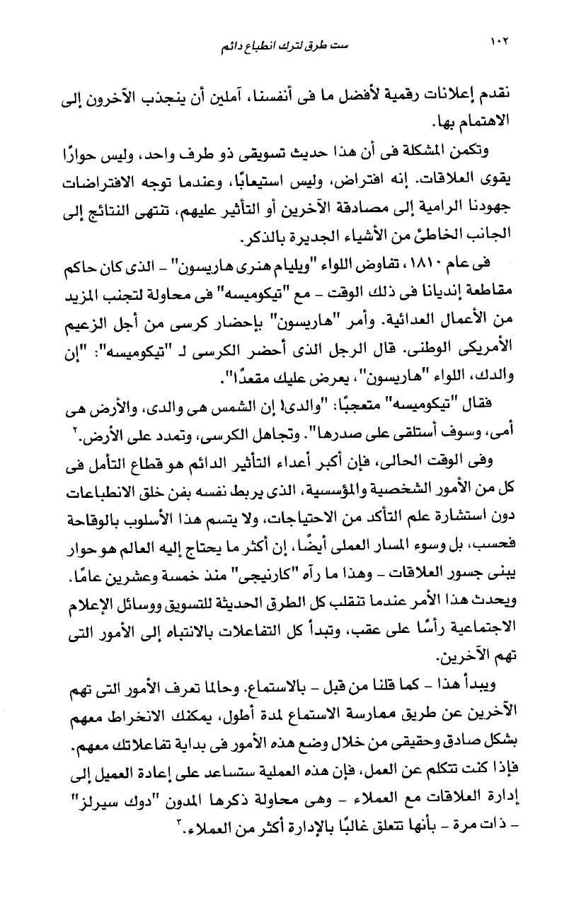 من الأعمال العدائية. وأمر ''هاريسون'' بإحضار كرسى من أجل الزعيم