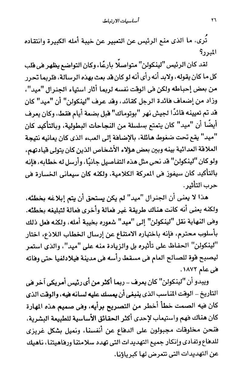 وفى النهاية نقل ''لينكولن" إلى "ميد'' شعوره بخيبة أمله، ولكنه فمل ذلك