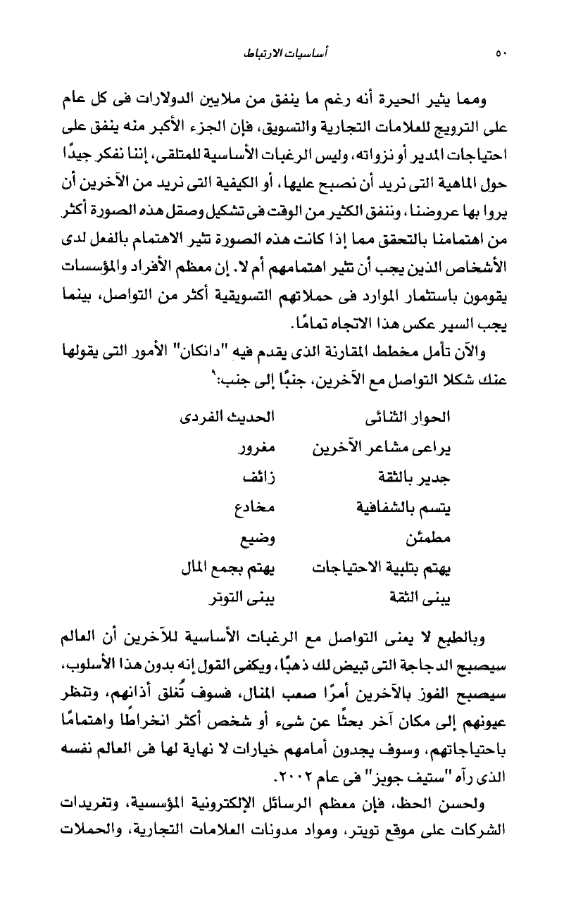 وبالطبع لا ليعنى التواصل مع الرغبات الأساسية للاخرين أن العالم