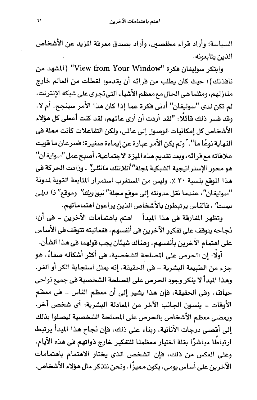 على اهتمام الآخرين بأنفسهم، وهناك شيئان يجب قولهما فى هذ ا الشأن.