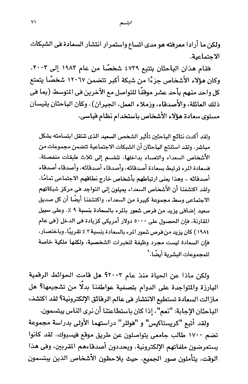 فسعادة المرء ترتبط بسعادة أصدقائه، وأصدقاء أصدقائه، وأصدقاء أصدقاء
