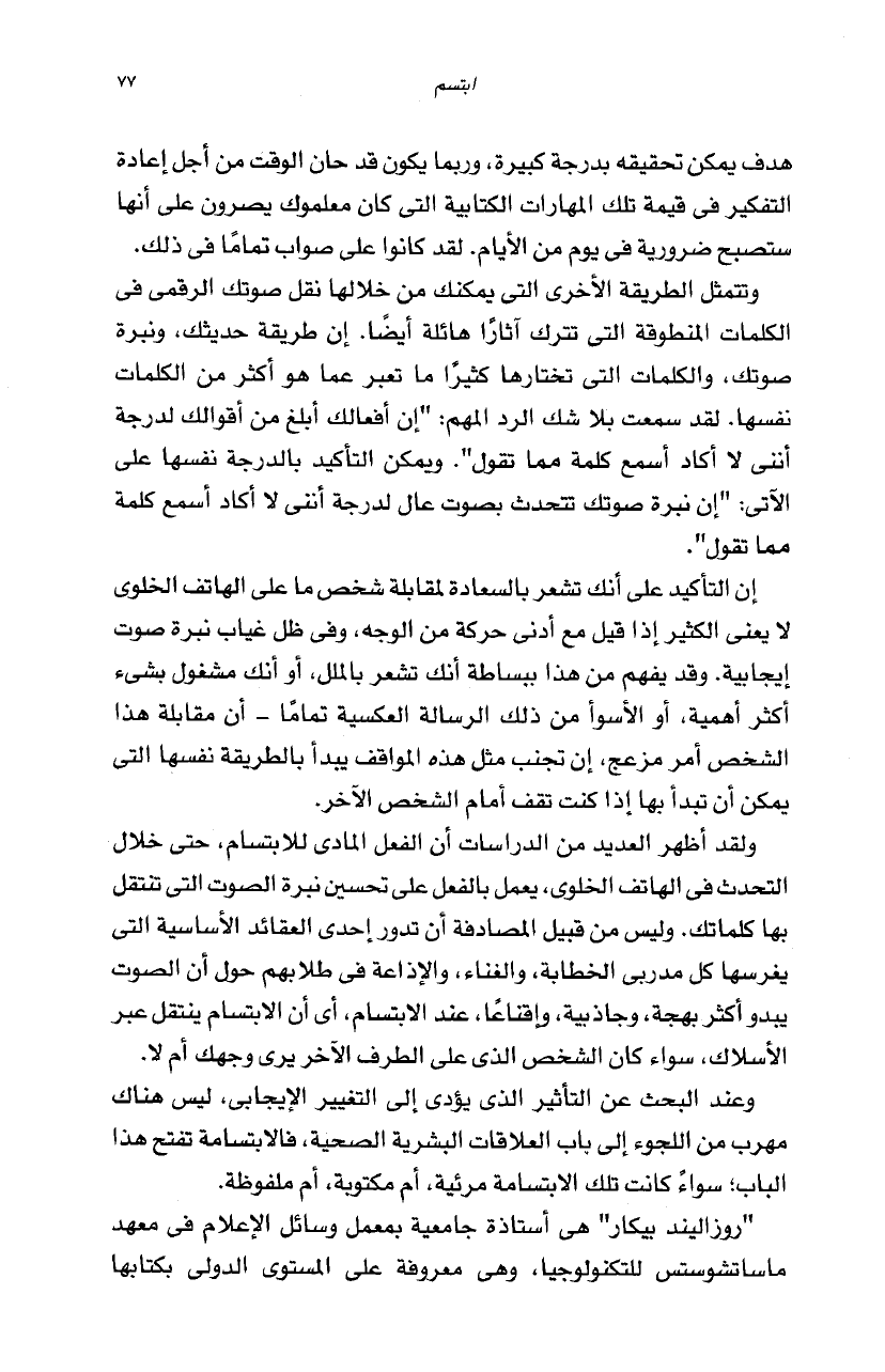 يبدو اكثر بهجة، وجاذبية، واقناعا، عند الابتسام، اى أن الابتسام ينتقل عبر