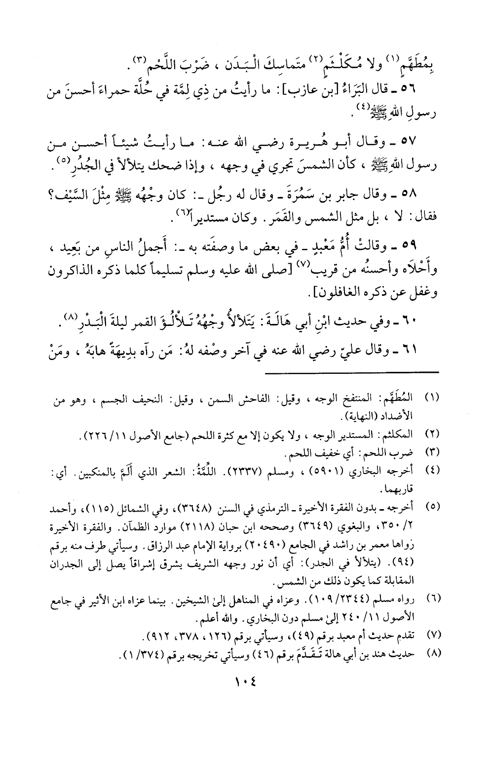 0 6 - وفي حديث ابن ابي هالة: يتلألأ وجهه تلألؤ القمر ليلة البدر (8).