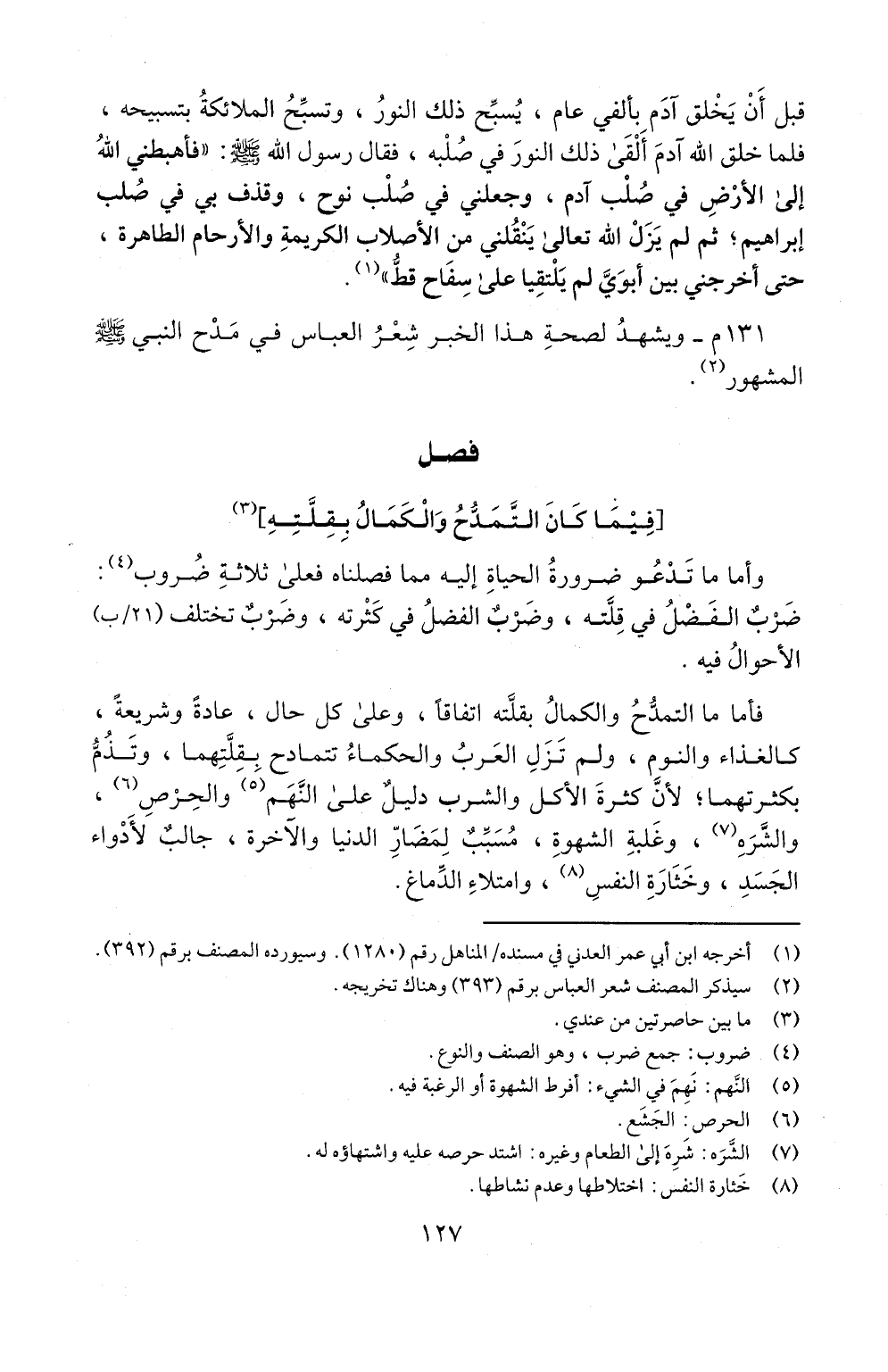 ] فيما كان التمذح والكمال بقلته [(3)