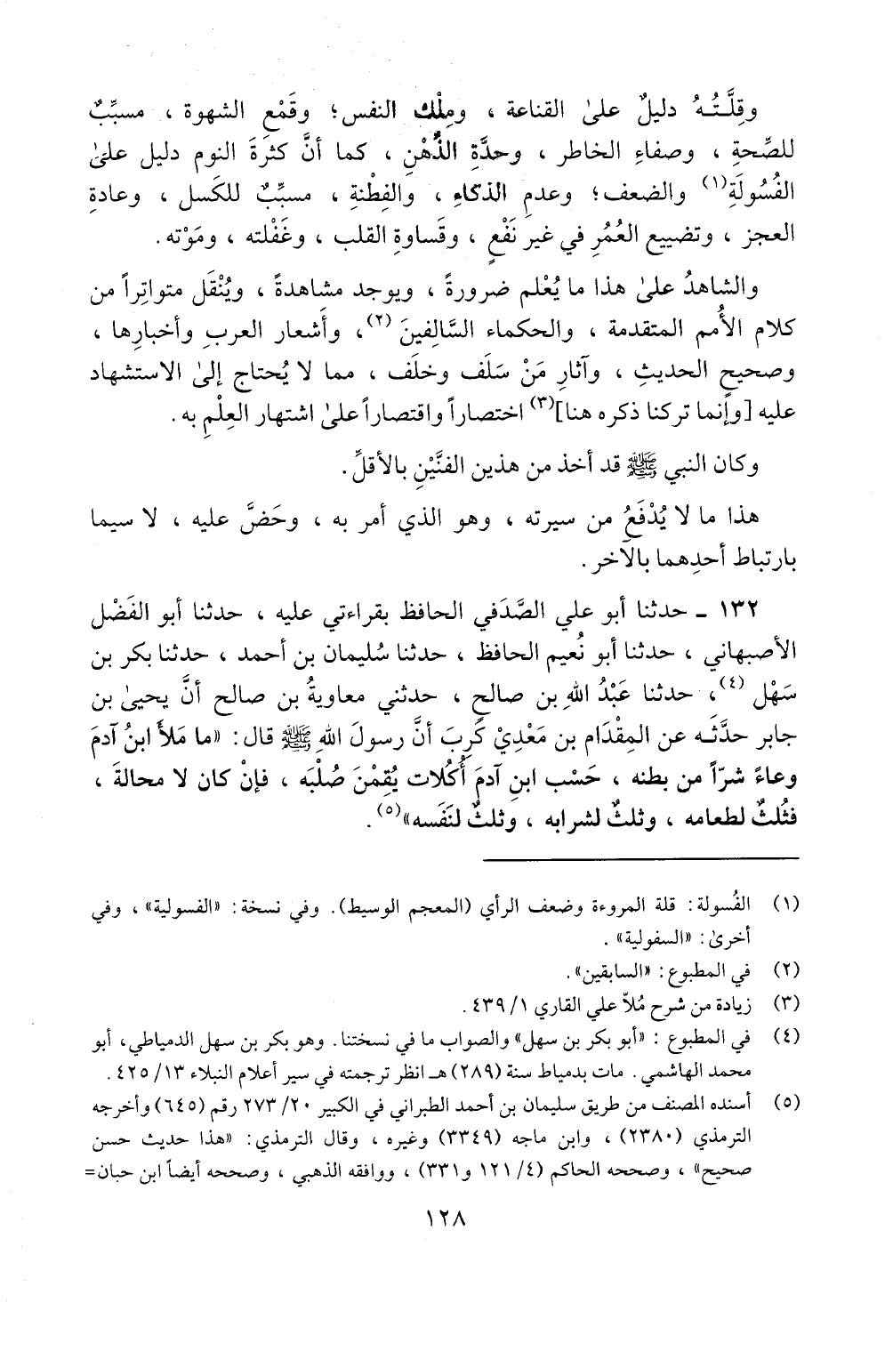 وعاء شرا من بطنه، حسب ابن ادم أكلات يقمن صلبه، فان كان لا محالة،