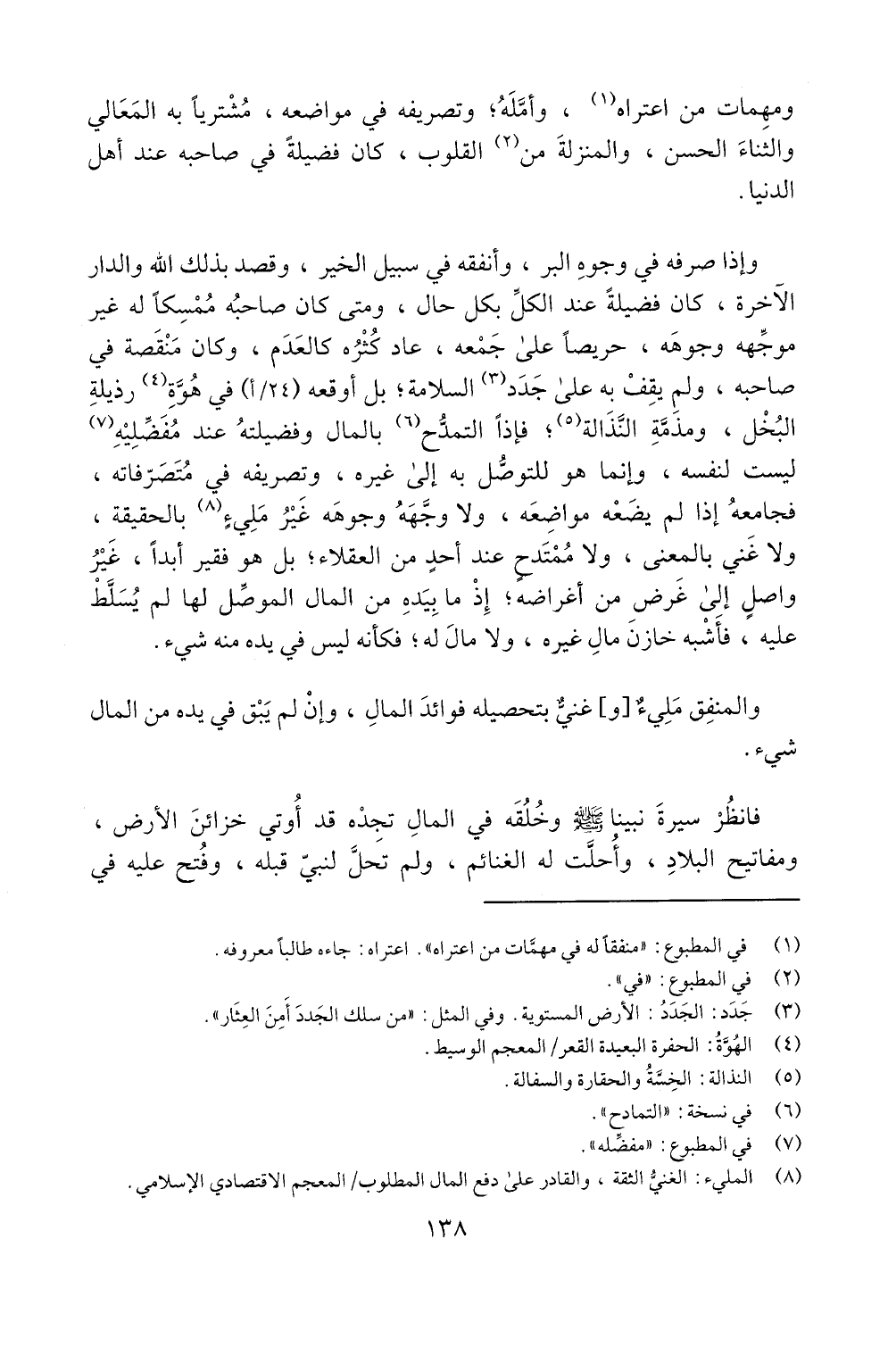 موجهه وجوهه، حريصا على جمعه، عاد كثره كالعدم، وكان منقصة في