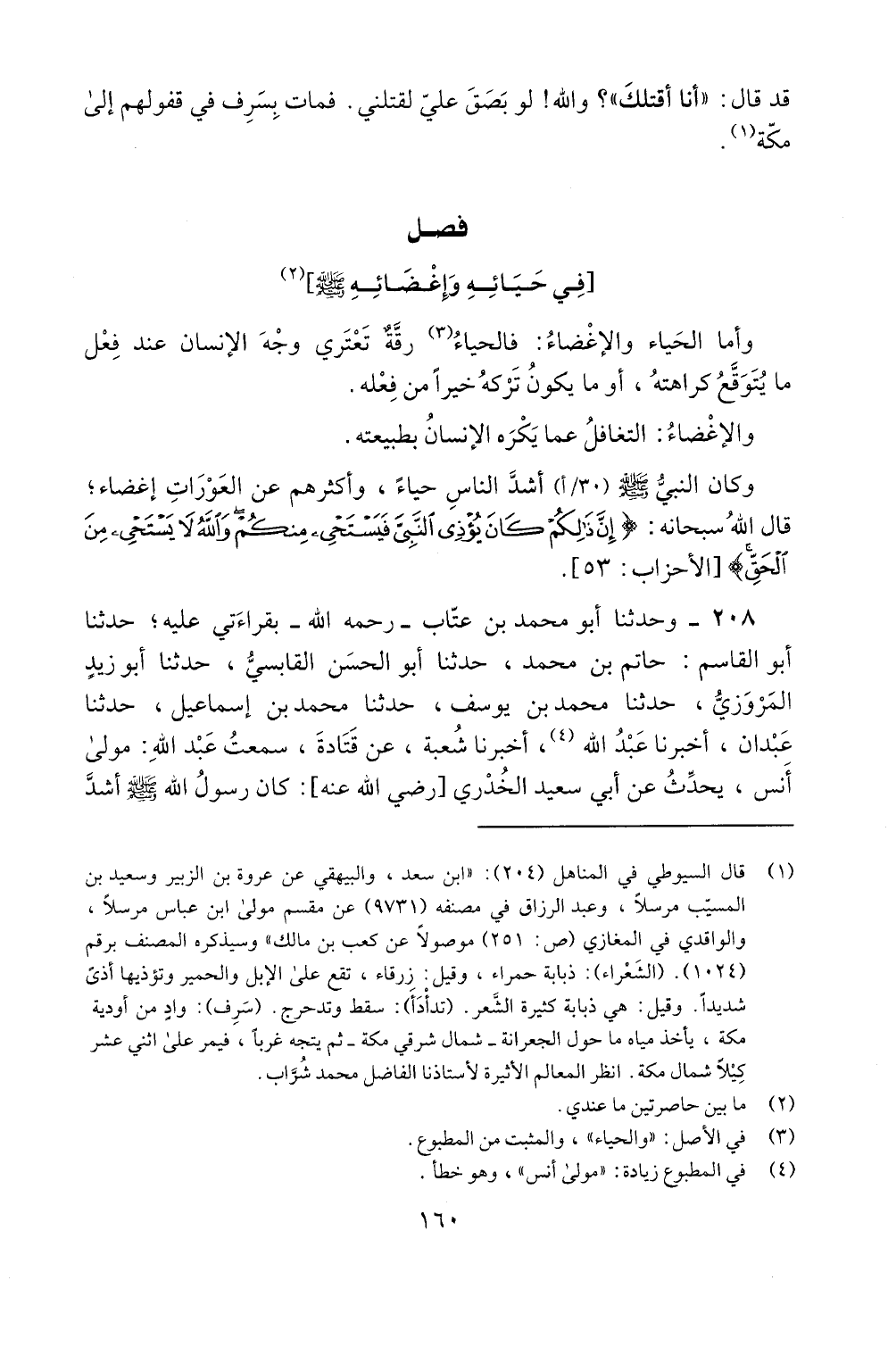 وكان النبيئ! يما (30/أ) اشذ الناس حياء، واكثرهم عن العورات إغضاء؛