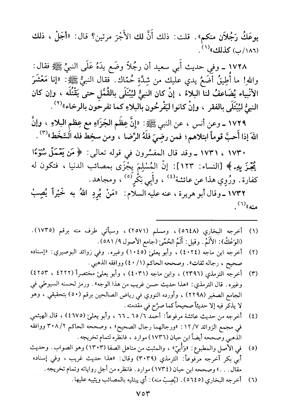 1729 - وعن انس، عن النبي ع! ي!: "ان عظم الجزاء مع عظم البلاء، وان