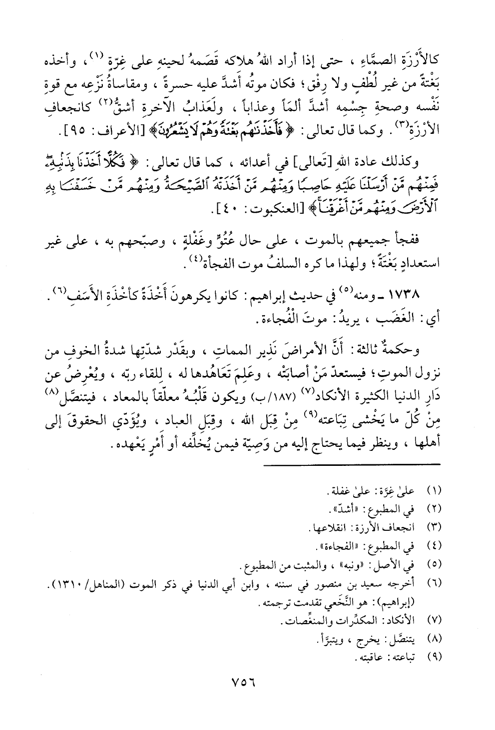 الأرزة (3). وكما قال تعالى: (فأضذنهم بغة وهتم لايمثتع! لن) أ ا لأعراف: 5 9 [.