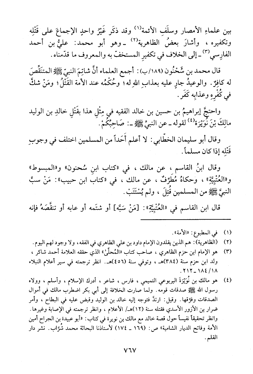 قال محمد بن سحنون (189/ب): أجمع العلماء أن شاتم النبي غ! ي! المتنقص