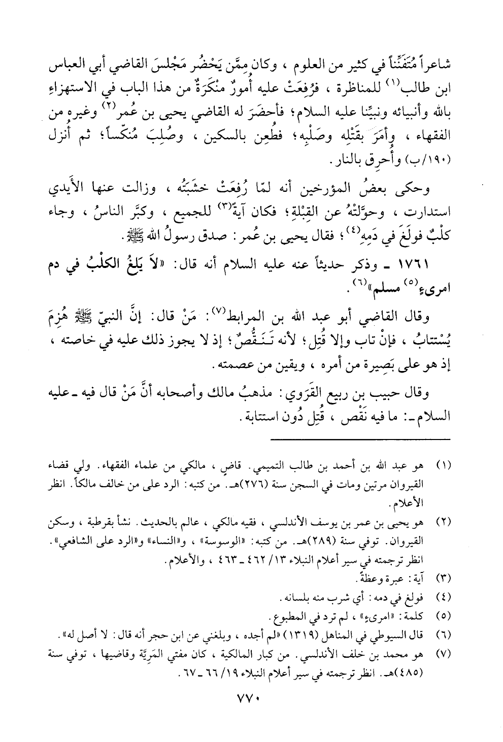 وقال حبيب بن ربيع القروي: مذهب مالك وأصحابه أن من قال فيه -عليه
