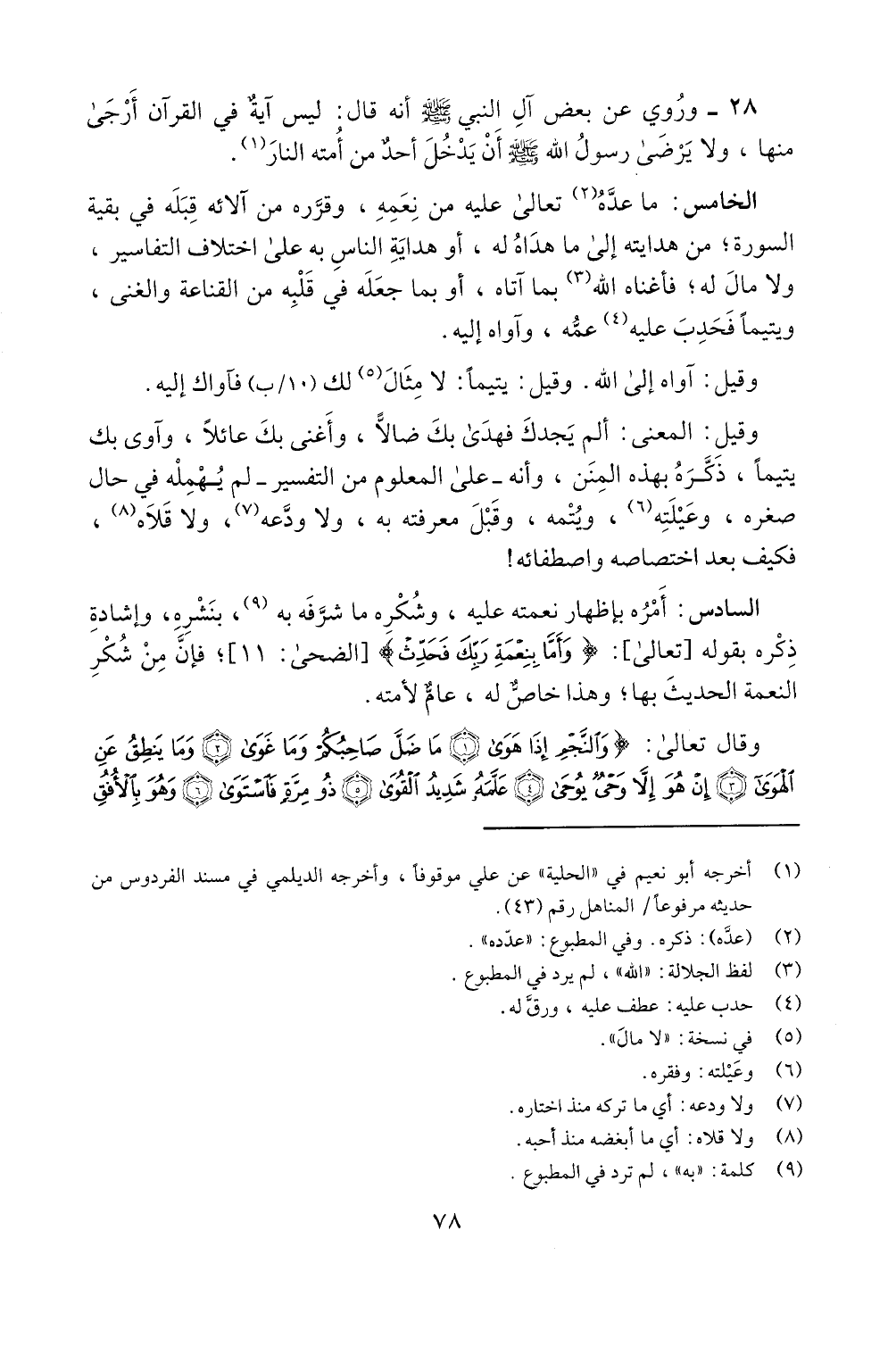 صعره، وعيلته 6، ويتمه، وقبل معرفته به، ولا ودعه (7)، ولا قلاه (8)،