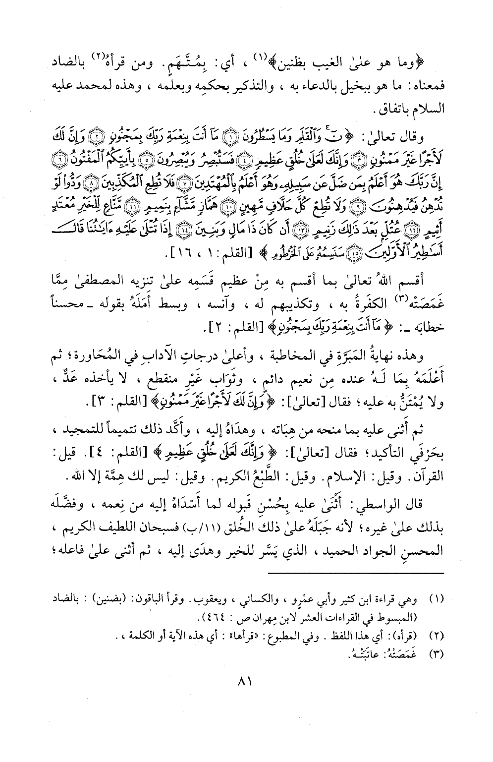 لاخرا عتر مضنون 5 وإنك لعك ظق عظيص ج فستبصر ولتصرون 3% بإليي أ لمفتون بم