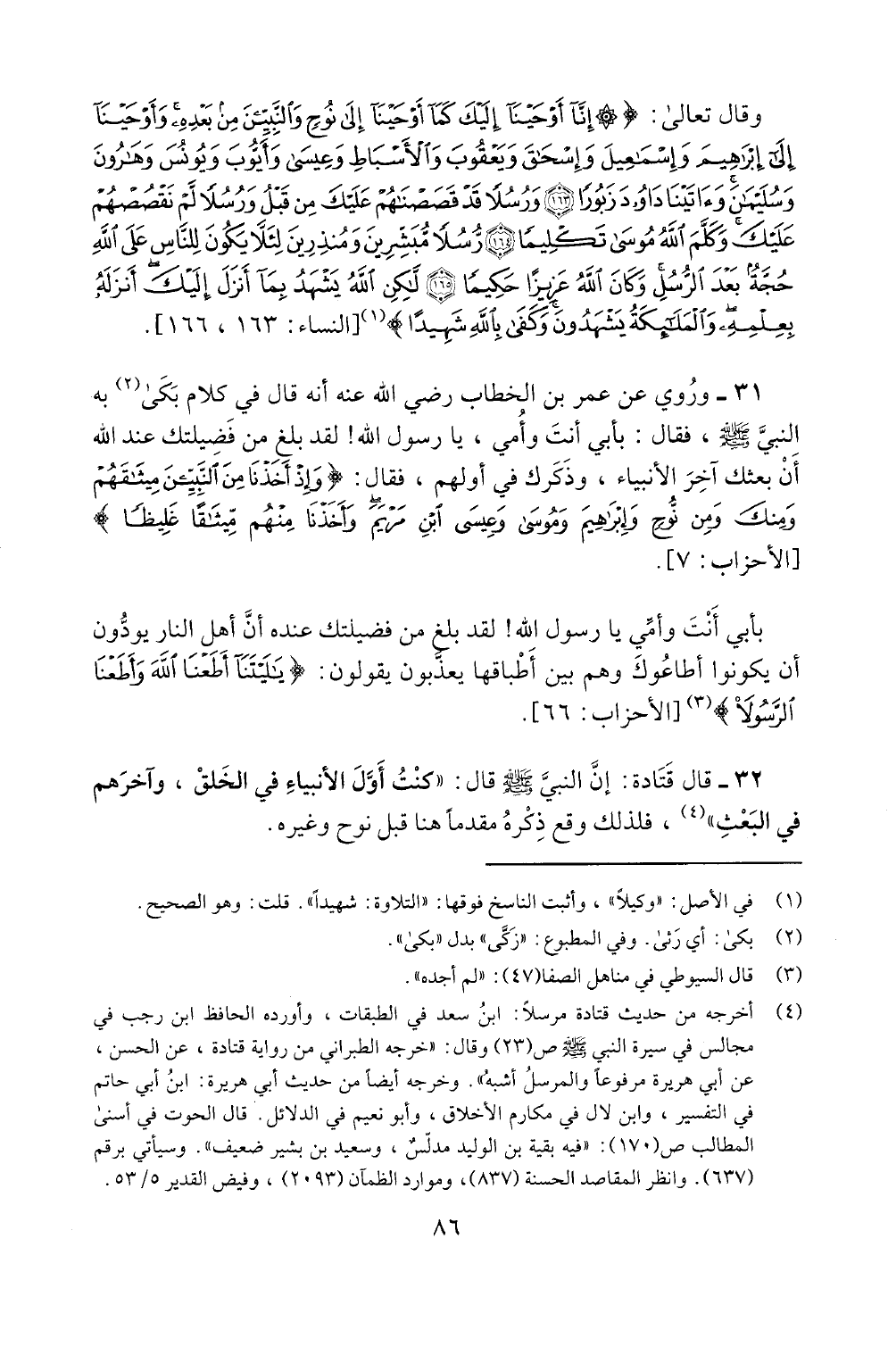32 - قال! قتادة: إن النبي! م! قال!: "كنت أول الانبياء في الخلق، واخرهم