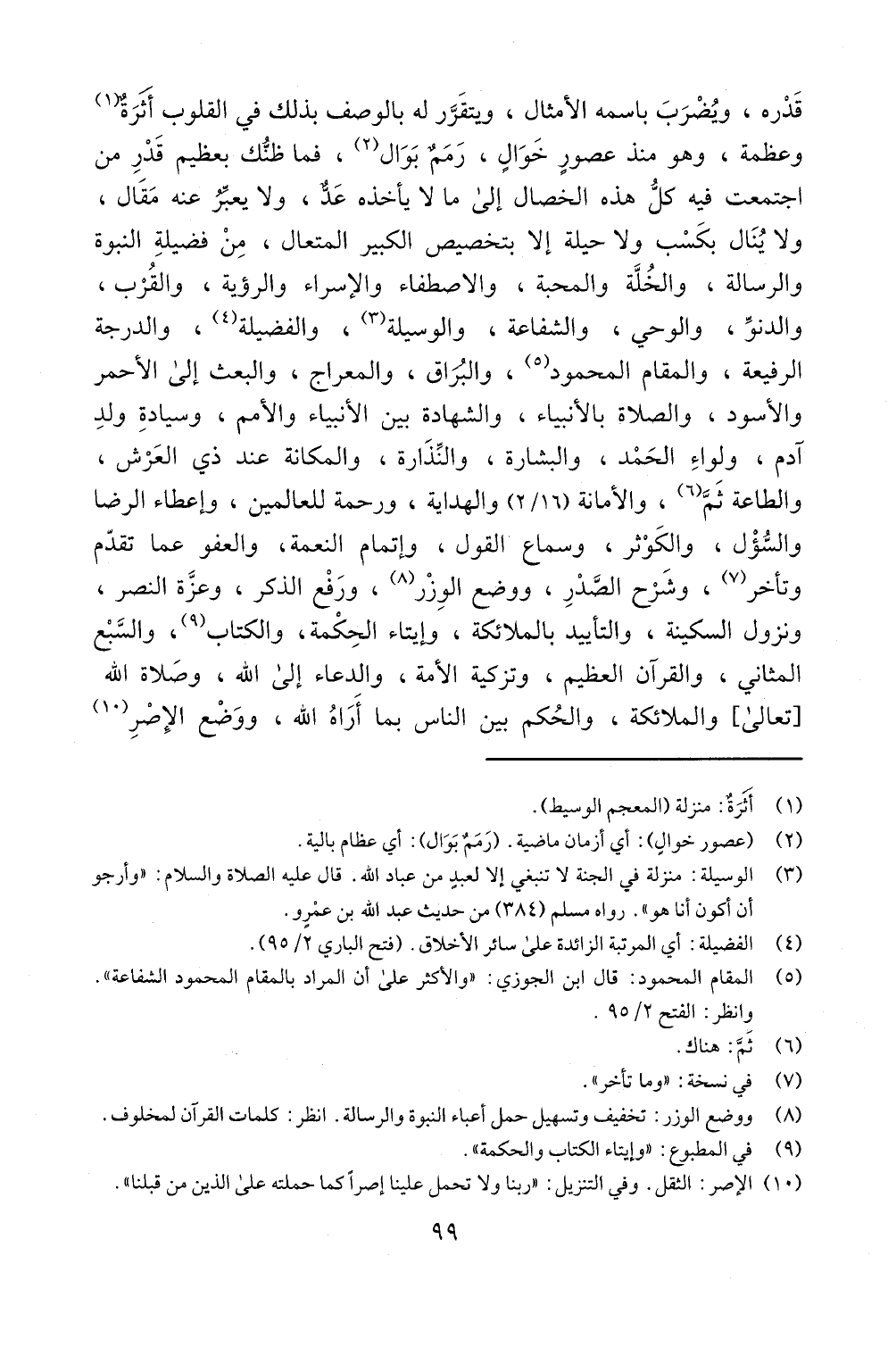 والدنؤ، والوحي، والشفاعة، والوسيلة (3)، والفضيلة (4)، والدرجة