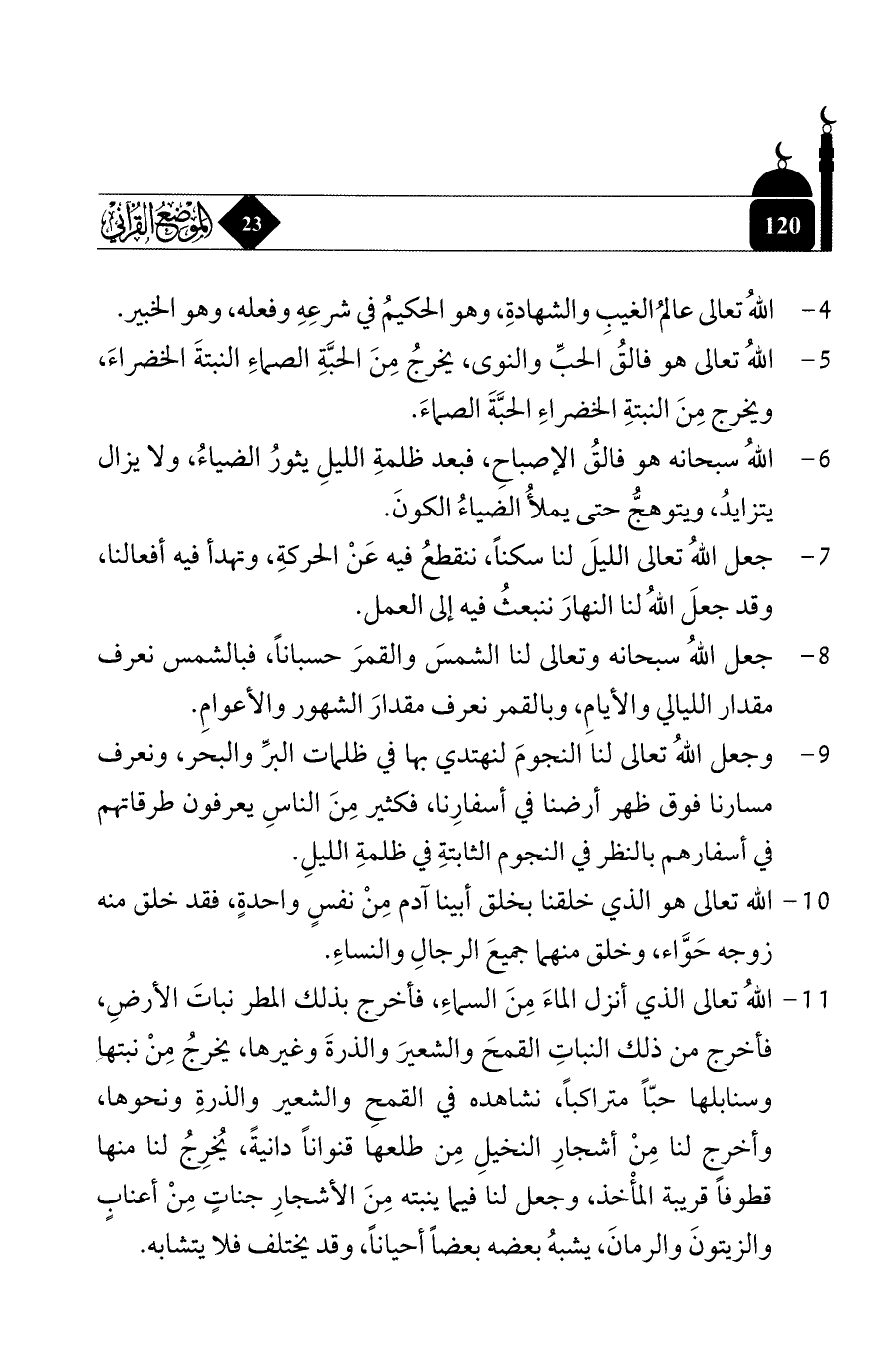 5 - الله تعالى هو فالق الحبِّ والنوى, يخرج من الحبَّة الصماء النبتة الخضراء, ويخرج من النبتة الخضراء الحبَّة الصماء.