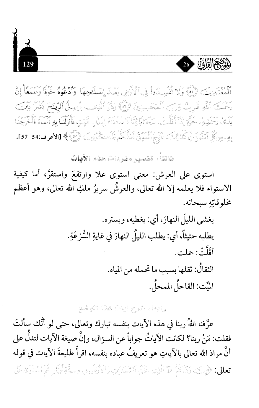 استوى على العرش: معنى استوى علا وارتفع واستقرَّ, أما كيفية الاستواء فلا يعلمه إلا الله تعالى, والعرش سرير ملك الله تعالى, وهو أعظم مخلوقاته سبحانه.